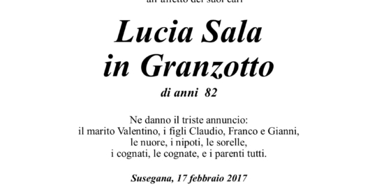 terzariol2017-02-16T12:06:14+01:00I funerali avranno luogo SABATO 18 c.m. alle ore 10.30 nella Chiesa Parrocchiale di Susegana. Il Santo Rosario sarà recitato VENERDI’ 17 c.m. alle ore 19.15 in Chiesa a Susegana. [...]