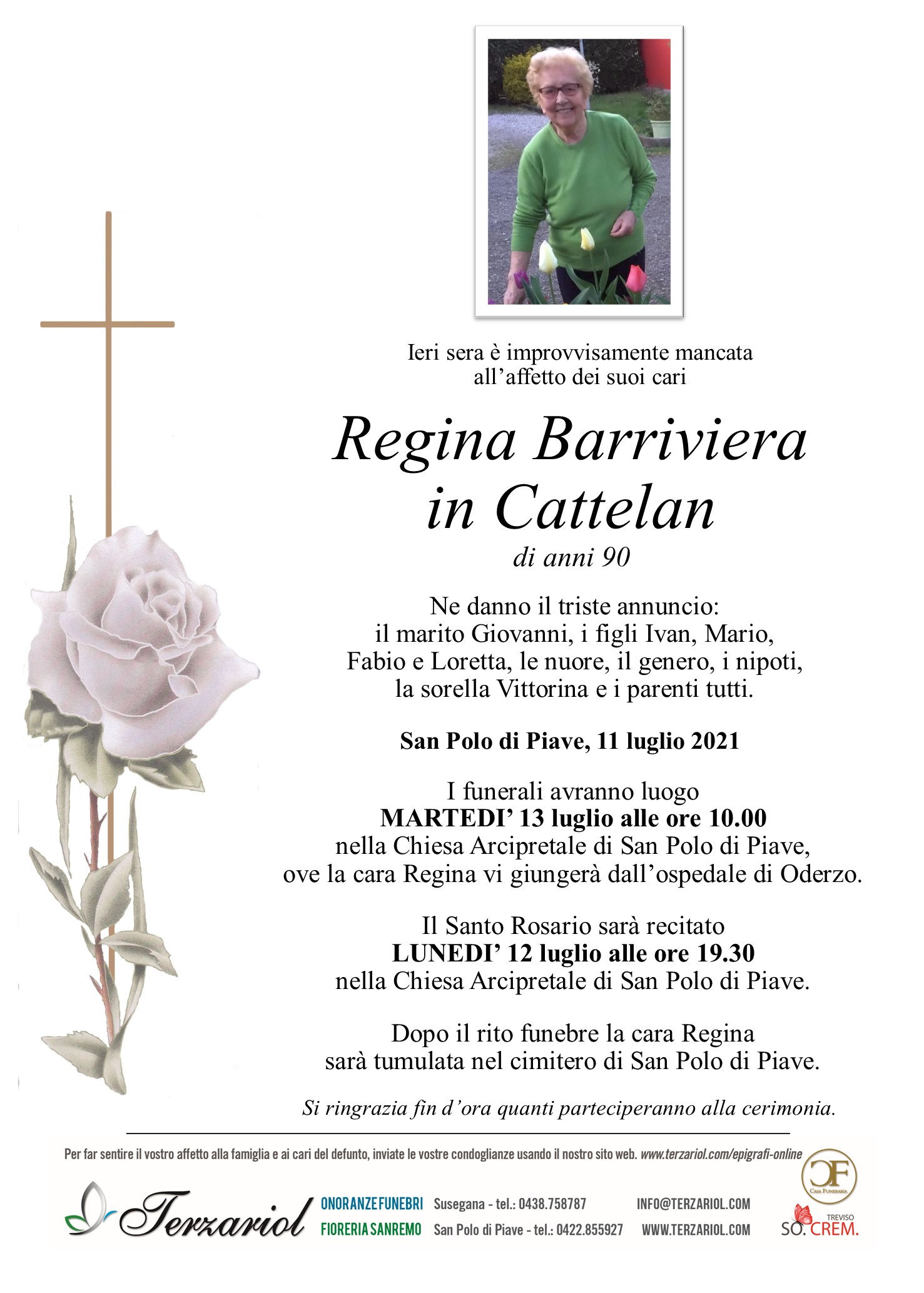 I funerali avranno luogo MARTEDI’ 13 luglio alle ore 10.00 nella Chiesa Arcipretale di San Polo di Piave, ove la cara Regina vi giungerà dall’ospedale di Oderzo.